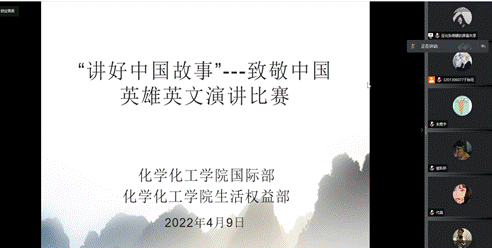4月9日上午9点,“讲好中国故事”英文演讲比赛以线上腾讯会议的形式拉开帷幕。本次活动由化学化工学院国际部、生活权益部联合举办,活动对象为化工学院全体同学。