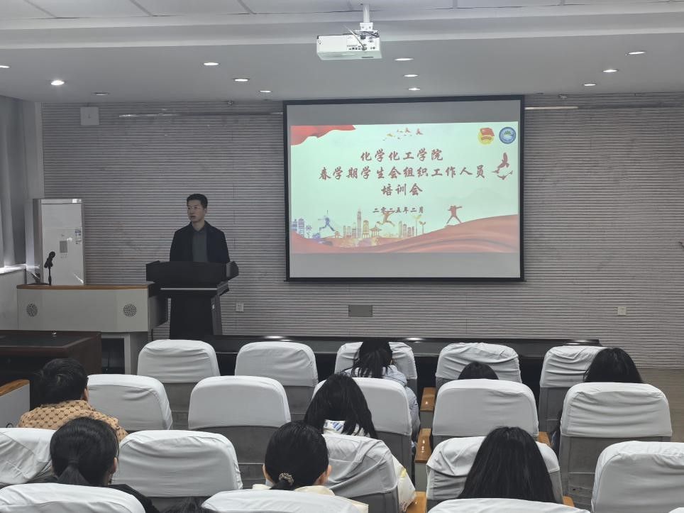 为深入推进新学期团学组织工作开展,提升学生骨干的理论知识储备,增强学生会的引领力、组织力、服务力,化学化工学院于2月19日下午在化工楼212会议室召开了春学期学生会组织工作人员培训会。学院团委副书记齐廉文、学生会主席团全体成员以及团学组织各部门负责人参加了此次培训会。