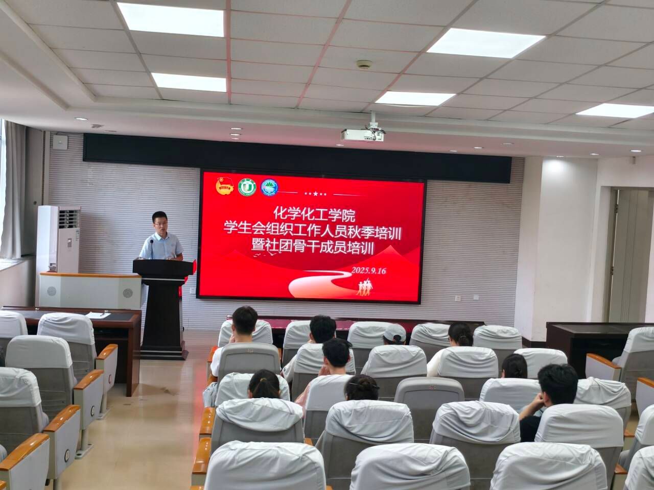 为凝聚团学组织合力,全面提升学生会工作人员和社团骨干的综合素质与业务能力,2025年9月16日上午九时,化学化工学院在212报告厅顺利举行2025年秋学期学生会组织工作人员及社团骨干培训会。会议由学院团委副书记齐廉文老师主持。