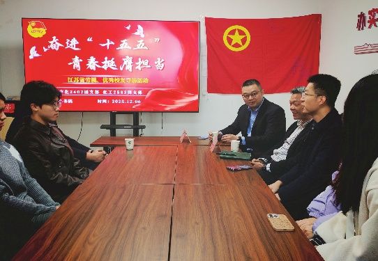 为进一步学习了解“十四五”时期国家重大发展成就,引导团员青年准确把握“十五五”时期的发展方向和时代需求,化学化工学院联合文心书院12月6日上午在文心书院会议室举办“榜样领航・薪火相传 —— 听劳模校友话担当” 主题座谈会,邀请从江苏大学化学化工学院走出的企业劳模黄翔校友返校,与团员青年共话奋斗、共聊担当。座谈活动由院党委副书记、副院长胥桂宏主持,院团委副书记齐廉文参加活动。