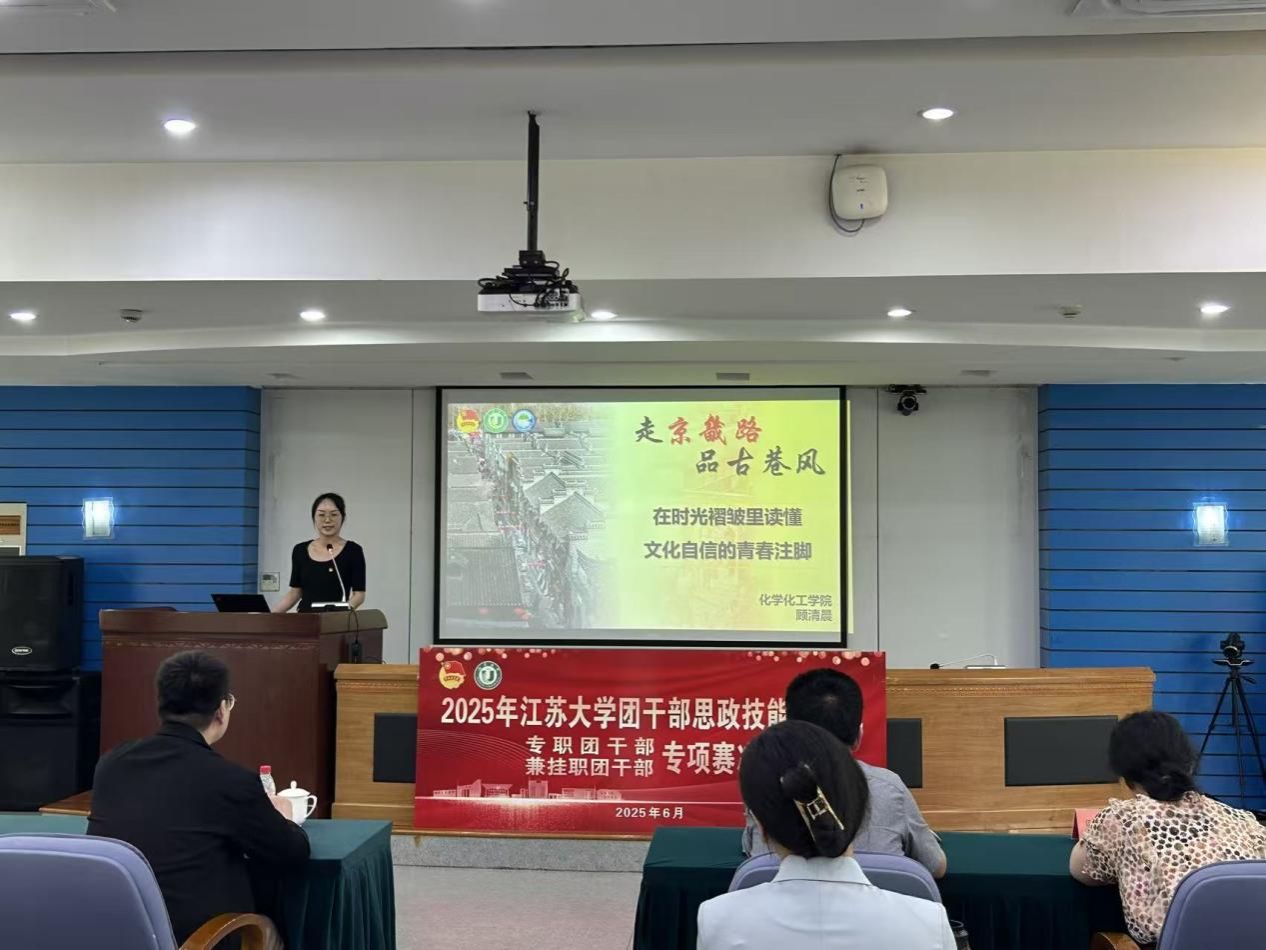 6月13日,江苏大学2025年度团干部思政技能大比武校级决赛圆满落幕。化学化工学院高度重视、精心组织,积极组织优秀兼职团干部参赛。经过激烈角逐,学院顾清晨老师凭借其主讲的思政课《走京畿路,品古巷风,在时光褶皱里读懂文化自信的青春注脚》,脱颖而出,荣获校级决赛三等奖。