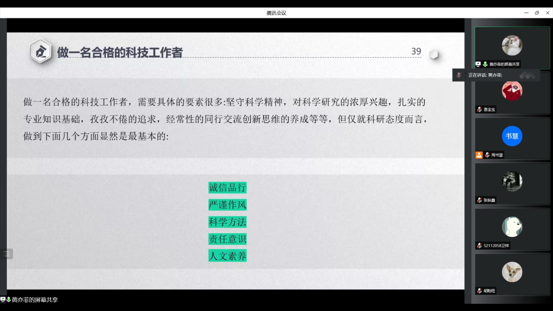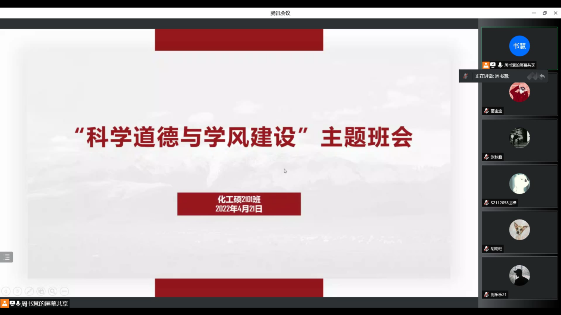 为深入贯彻习近平总书记在科学家座谈会上的重要讲话精神,提升研究生学术道德水平,优化科研、学术环境。4月21日,化学化工学院开展“科学道德与学风建设”线上主题班会。