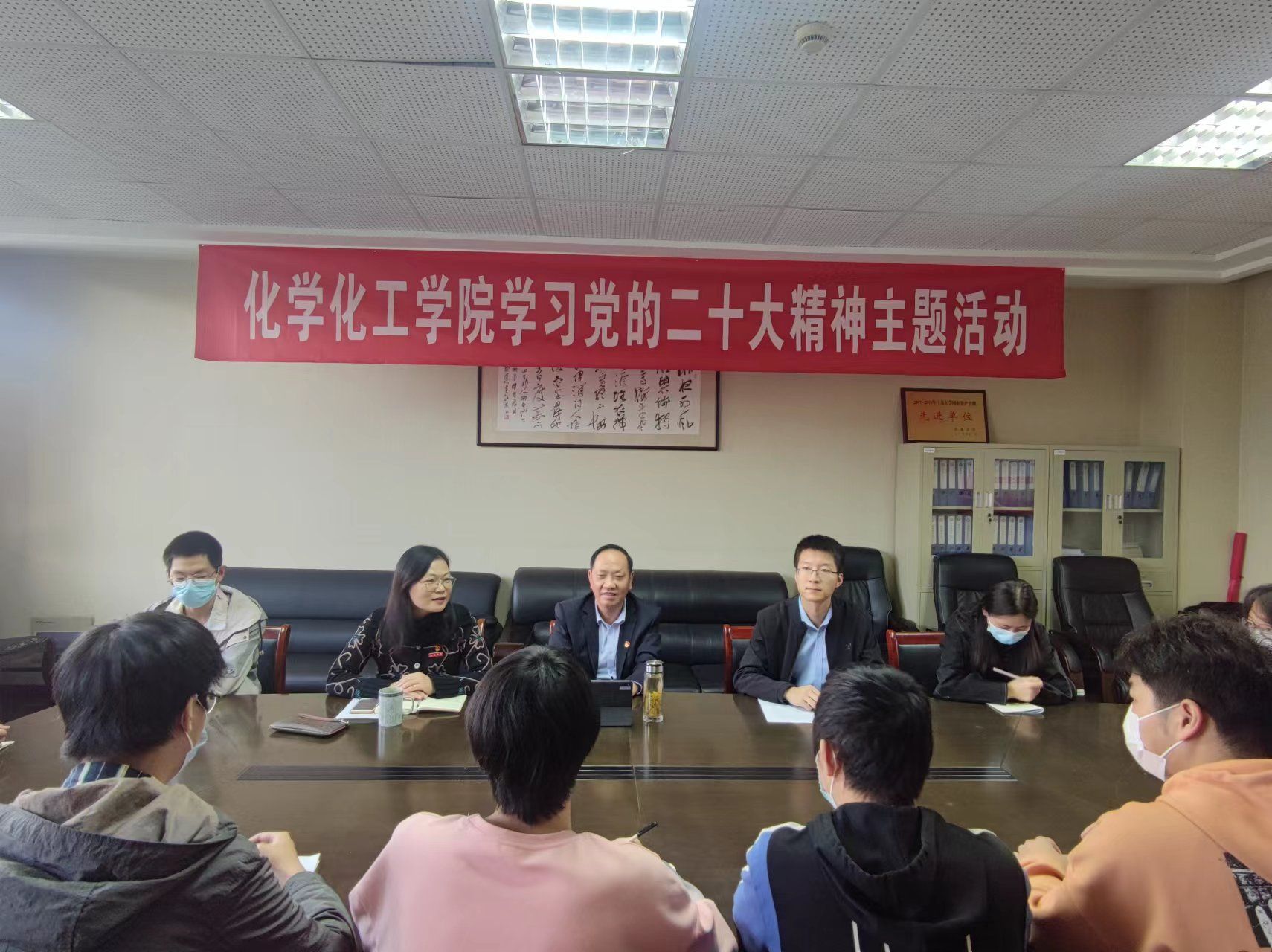 11月2日,副校长赵玉涛来到化学化工学院,参加联系的应化2001班“学习党的二十大精神、成才报国”主题活动。院党委副书记庄蕾、辅导员齐廉文和全体同学参加。