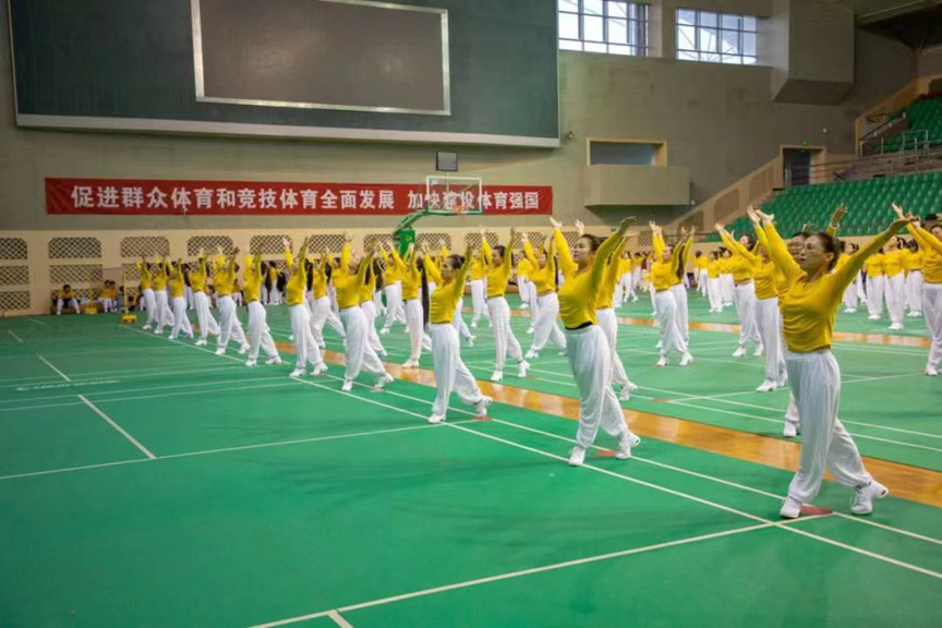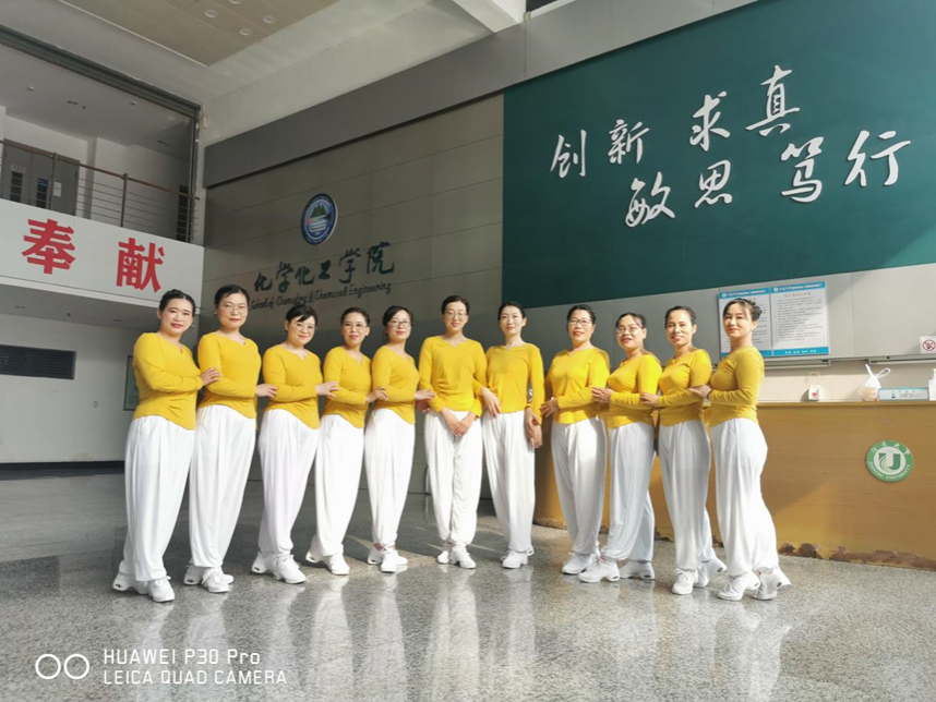 本次健身操舞比赛有两支曲目,开场舞为青春动感时尚的《时代感》,旋律昂扬向上,节奏明快,动感十足。第二支《共圆中国梦》为欢快流畅、优雅舒展的三步风格舞蹈,两支舞蹈风格迥异,却一样精彩!我院女教工大多没有舞蹈基础,大家不惜牺牲晚上和周末休息时间,到学院加班加点排练,反复推敲舞蹈动作细节,力求最大程度呈现参赛曲目的特色,达到最好的表演效果。赛场上,队员们在亮黄色上衣的映衬下,个个意气风发,动作整齐规范、身姿挺拔优美,尽显风采,舞出了化工女教工的艺术与品位,展现了化工人积极向上、团结进取、精益求精、勇于争先的精神风貌。