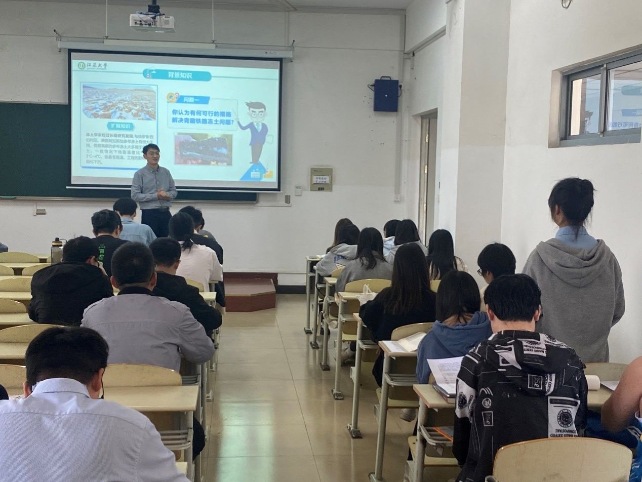 本次教学主要讲解内容为第五章蒸气动力循环,具体知识点涉及蒸汽动力循环、热力学第二定律、逆卡诺制冷循环、制冷系数。傅小奇老师以青藏铁路建设-冻土问题的解决为例,实施科研思政,育人润物无声。基于化工热力学知识点,通过设定“案例情境-启发思考-解决问题-爱国德育教育-总结提升”的教学环节,将复杂的热力学知识体系和爱国主义、集体主义、奉献精神等有机结合。整个课堂教学过程中,课程结构紧密细致,课程内容重点突出,课堂气氛紧张活跃,师生互动积极密切,充分发挥了课堂教学中教师主导性和学生主体性的作用。
