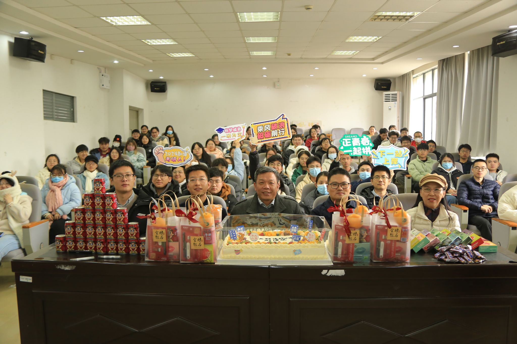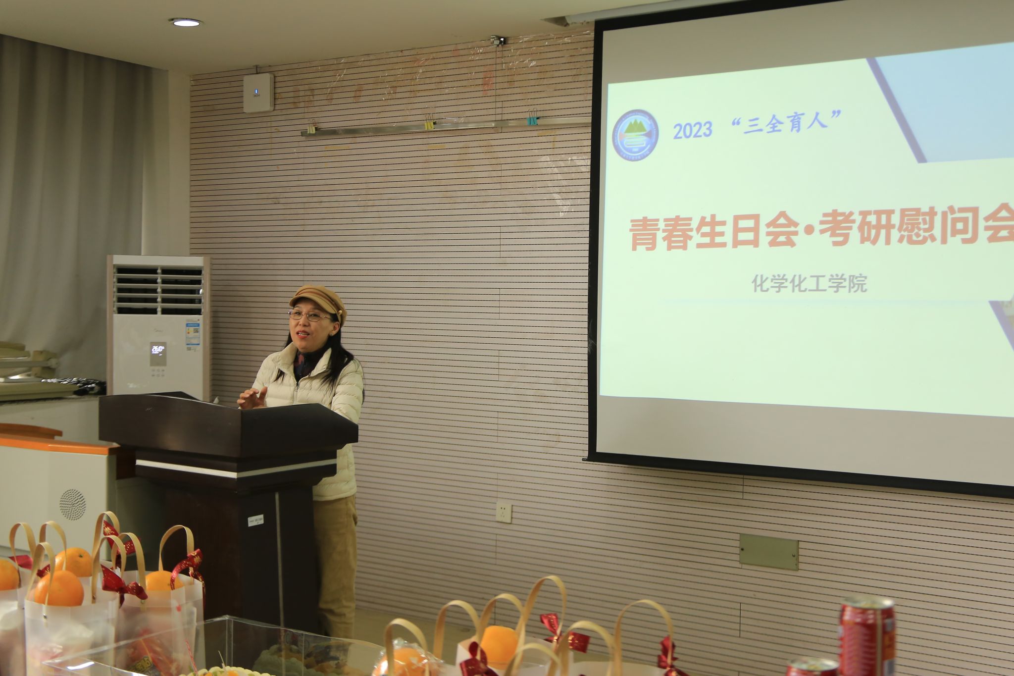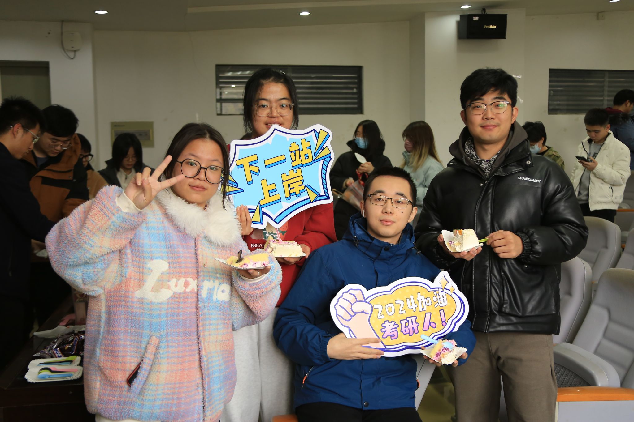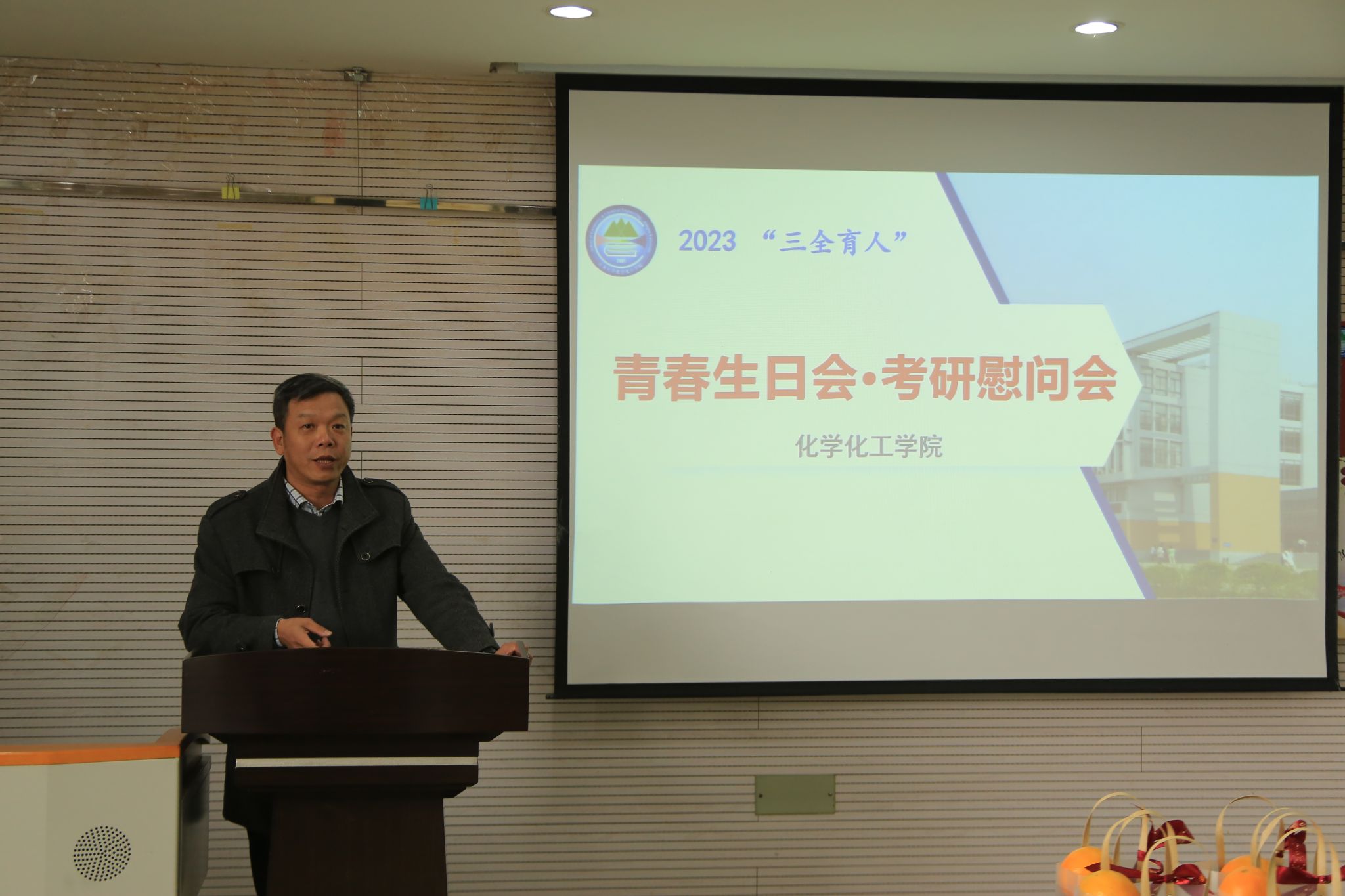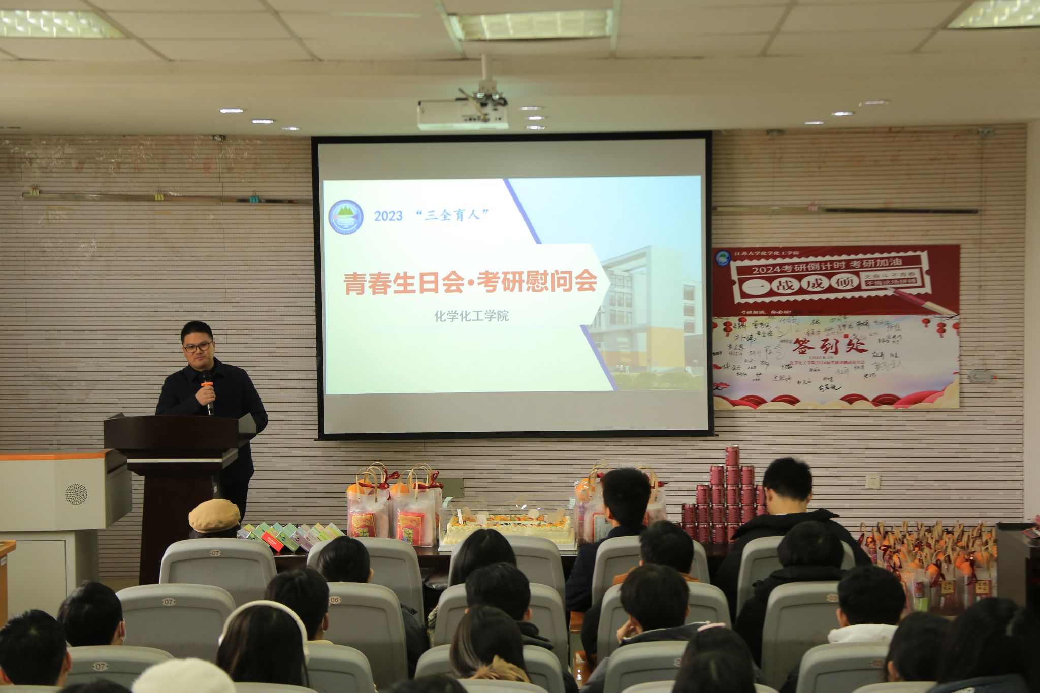 2024年全国硕士研究生招生考试即将来临,为了帮助考研学子坚定考研信心,缓解备考压力,11月30日下午,化学化工学院在学院212报告厅举办了“青春生日会·考研慰问会”活动。学院院长潘建明,党委副书记、副院长胥桂宏,院工会主席张蓉仙,全体辅导员及报考2024年硕士研究生考试的学生参加了本次活动。