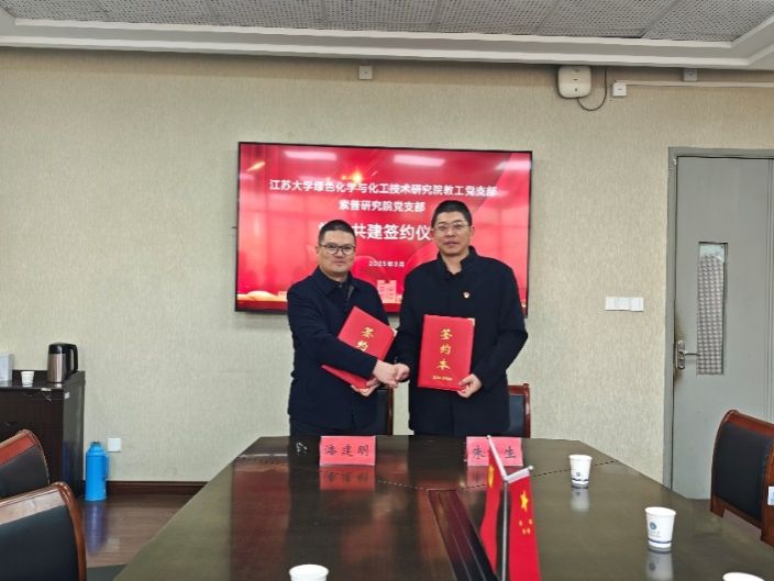江苏大学化学化工学院院长、绿色化学与化工研究院党支部书记潘建明与索普研究院院长、索普研究院党支部书记朱桂生在化工楼214会议室共同签署党建共建协议。在党员代表见证下,双方党支部围绕成立“梅香攻关党小组”、共育“双师型红梅人才”、打造“梅园产学研联盟”三大行动达成深度合作:针对索普提出的技术需求清单,由双方党员技术骨干“揭榜挂帅”,每季度在梅园召开一次进度会,让党旗插在攻关一线。深化研究生工作站建设,推行“校企双导师”制,让研究生党员既在实验室学理论,更到生产线练本领。每年举办“绿色化工创新论坛”,使梅园成为产学研协同创新的媒介平台。