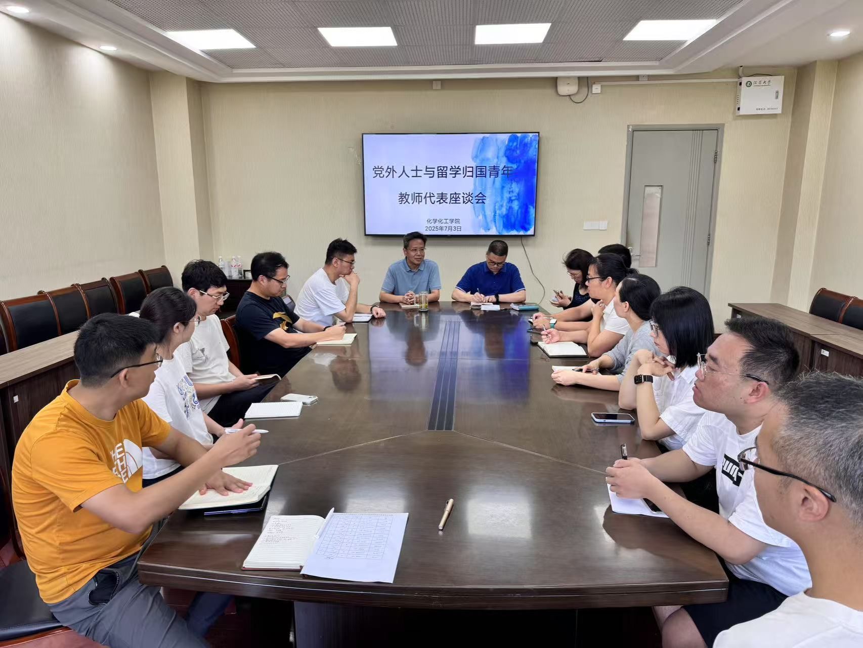 7月3日上午,化学化工学院召开党外人士和留学归国青年教师代表座谈会。学院党委书记周国华、院长潘建明、工会主席张蓉仙、学院各民主党派和留学归国的青年教师代表参加会议,会议由周国华主持。