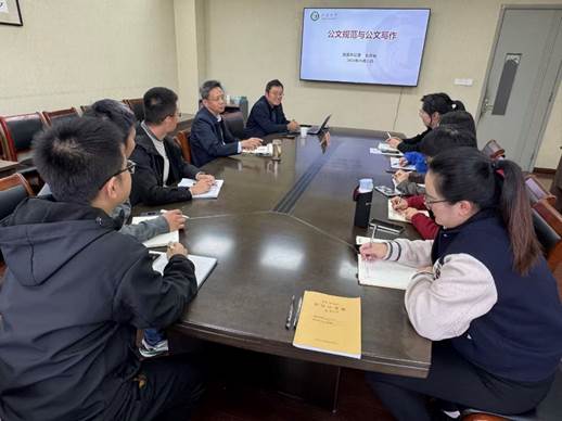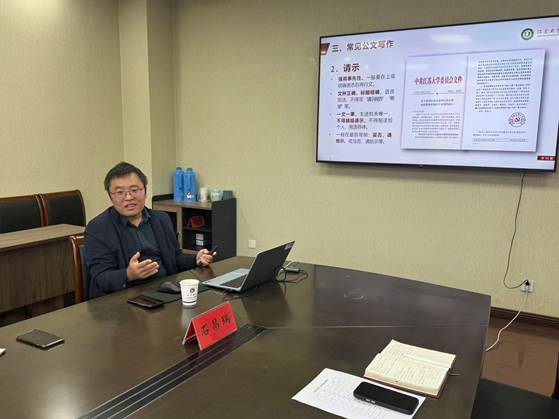 校党委办公室副主任石昌瑞作《公文规范与公文写作》主题报告。报告阐述了公文的概念特点、分类格式,并对常见的公文类别以实例逐一进行了详细的讲解。石昌瑞指出,行政人员要以“勤学善思”练好内功,以“朴实文风”塑造形象,以“精准用典”提升内涵,以“零容忍”态度杜绝低级错误。同时,要善用AI工具提升公文质量与工作效率。