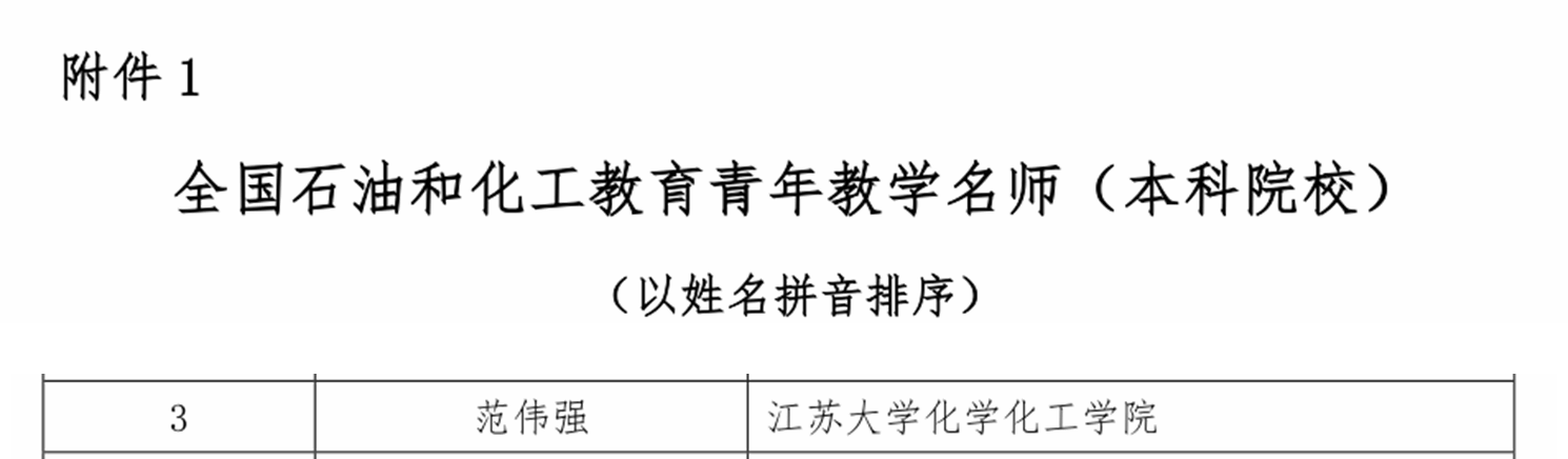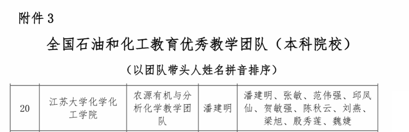 近日,中国化工教育协会公布了2025年全国石油和化工教育青年教学名师、优秀教学团队、优秀教学管理人员认定结果。我院教师凭借扎实的教学功底、突出的团队协作与高效的管理能力,斩获三项重要荣誉:范伟强教授获评“全国石油和化工教育青年教学名师”,潘建明教授牵头的农源有机与分析化学教学团队入选“全国石油和化工教育优秀教学团队”,朱国兴教授荣获“全国石油和化工教育优秀教学管理人员”称号。