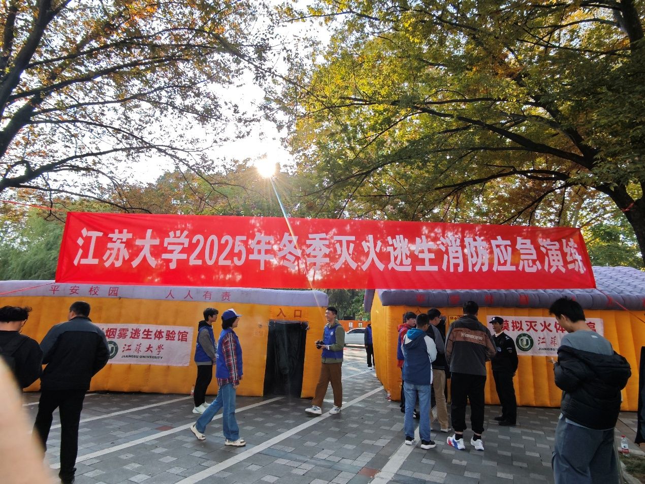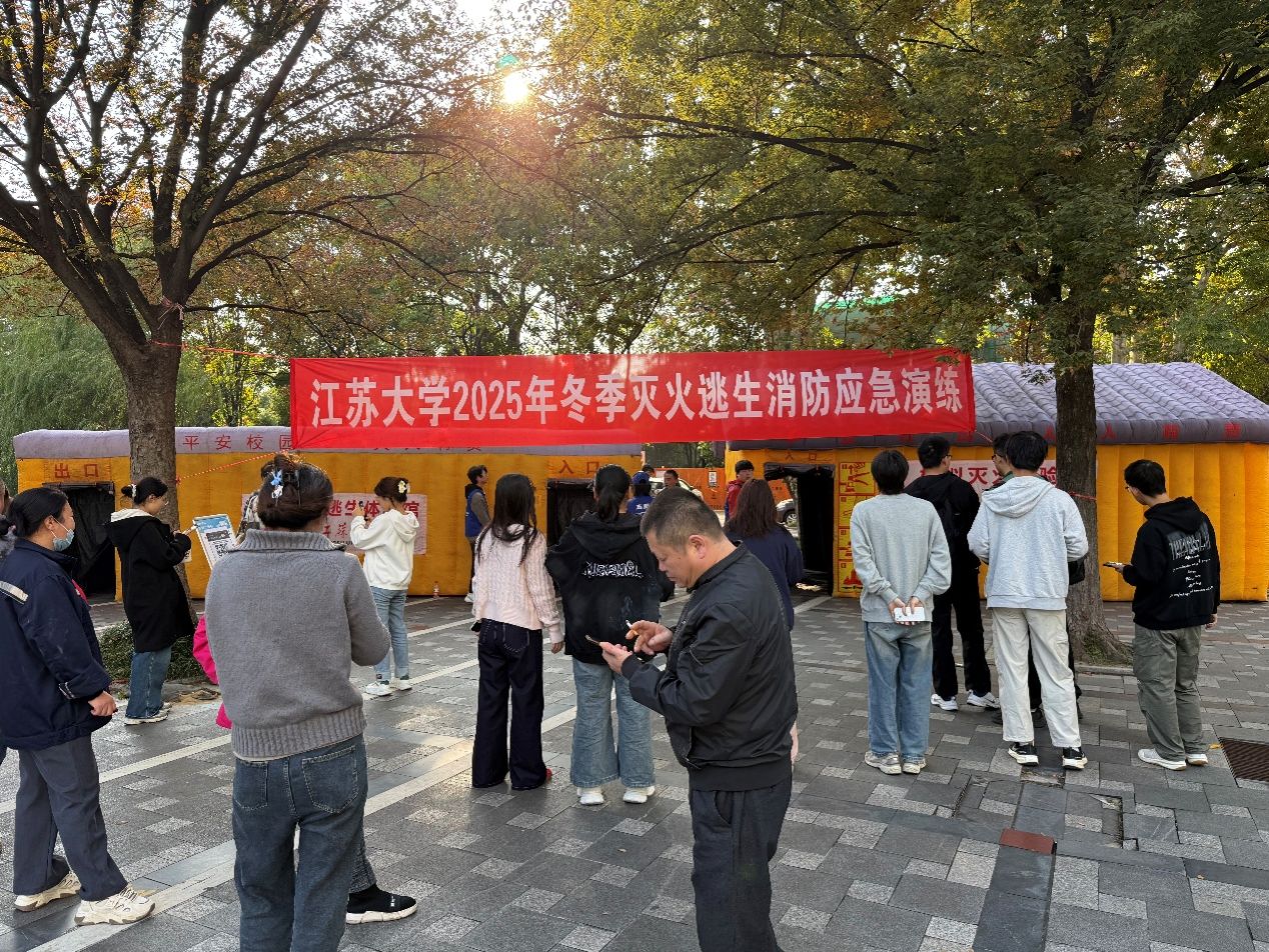 为提升师生员工的消防安全意识,增强应急自救能力,根据《江苏大学消防安全管理规定》和《江苏大学消防安全管理考核实施办法(试行)》相关规定,江苏大学安全保卫处消防(技防)科于2025年11月11日-12日在三江楼南侧楼前(荷花池旁)组织进行了“模拟灭火和模拟烟雾应急疏散”演练活动。我院积极响应活动要求,于 12日下午组织70余名师生代表参加此次消防技能演练活动。