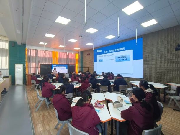 在镇江外国语学校的精心安排下,同学们首先参观了校园环境,感受中学化学教学的育人氛围与设施条件。随后,师生共同观摩了胡长文老师与朱伟老师的两节高质量初三化学公开课。两位老师教学设计精巧、课堂互动生动,展现了扎实的教学功底与鲜明的教学风格,为学生提供了鲜活的教学范例。