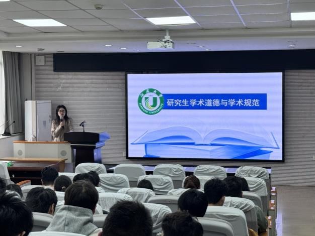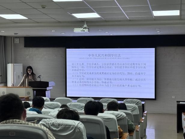 为深入贯彻落实科学道德与学术规范教育,强化研究生学术诚信意识,营造严谨治学的科研氛围,近日,化学化工学院在学院212报告厅举办“研究生学术道德与学术规范”专题讲座。活动邀请校研究生事务管理科崔婷婷老师主讲,研究生辅导员顾清晨主持,2025级研究生参加。