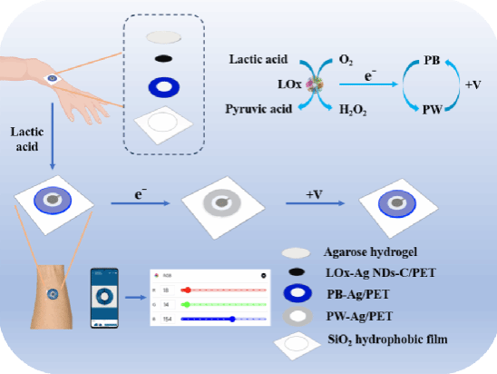 可穿戴传感器在运动评估、健康监测和医疗诊断等方面具有广阔的应用前景。然而,大多数已报道的可穿戴传感器在检测过程中仍依赖复杂的非移动设备如电化学工作站进行供能、信号转换和读取,且仅能将感知信息转化为电信号,缺乏直观的可视化功能。