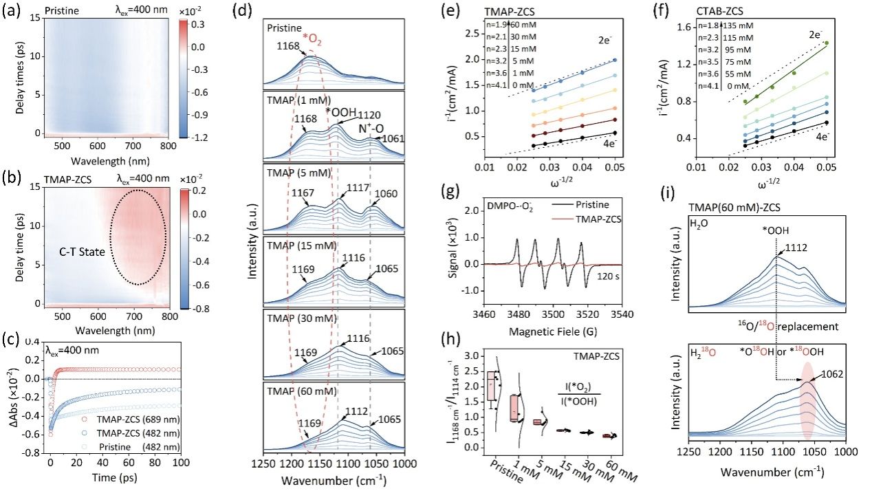 过氧化氢的绿色合成是能源化学领域的核心挑战之一。传统光催化体系受限于水氧化反应中四电子析氧路径的热力学优势,难以实现双电子路径的高选择性调控。本研究创新性地提出表面极化工程策略,通过在ZnCdS₂光催化剂表面锚定极化N⁺配体,构建长寿命电荷转移激发态,将光生空穴的氧化能力精准调控至适于双电子反应的区间,并利用N⁺中心的静电作用稳定关键*OOH中间体,成功将水氧化路径从四电子析氧导向双电子过氧化氢合成。在无牺牲剂的纯水体系中,改性催化剂的过氧化氢产率提升超20倍,并通过连续流动反应器验证了其实际应用的可行性。此项研究为解决多电子反应路径选择性调控这一共性难题提供了新范式,标志着我校团队在光催化水氧化研究领域取得了重要进展。
