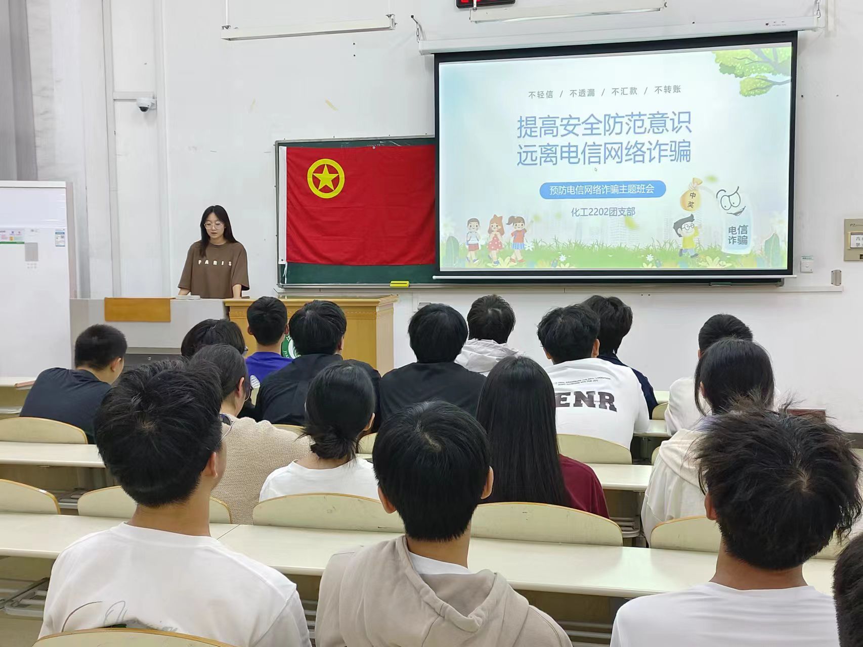 为提高学生防范电信网络诈骗意识,增强识骗、防骗、拒骗的能力,有效筑牢“防诈墙”,9月伊始,化学化工学院各年级采用丰富多样的形式积极开展反诈宣传活动。